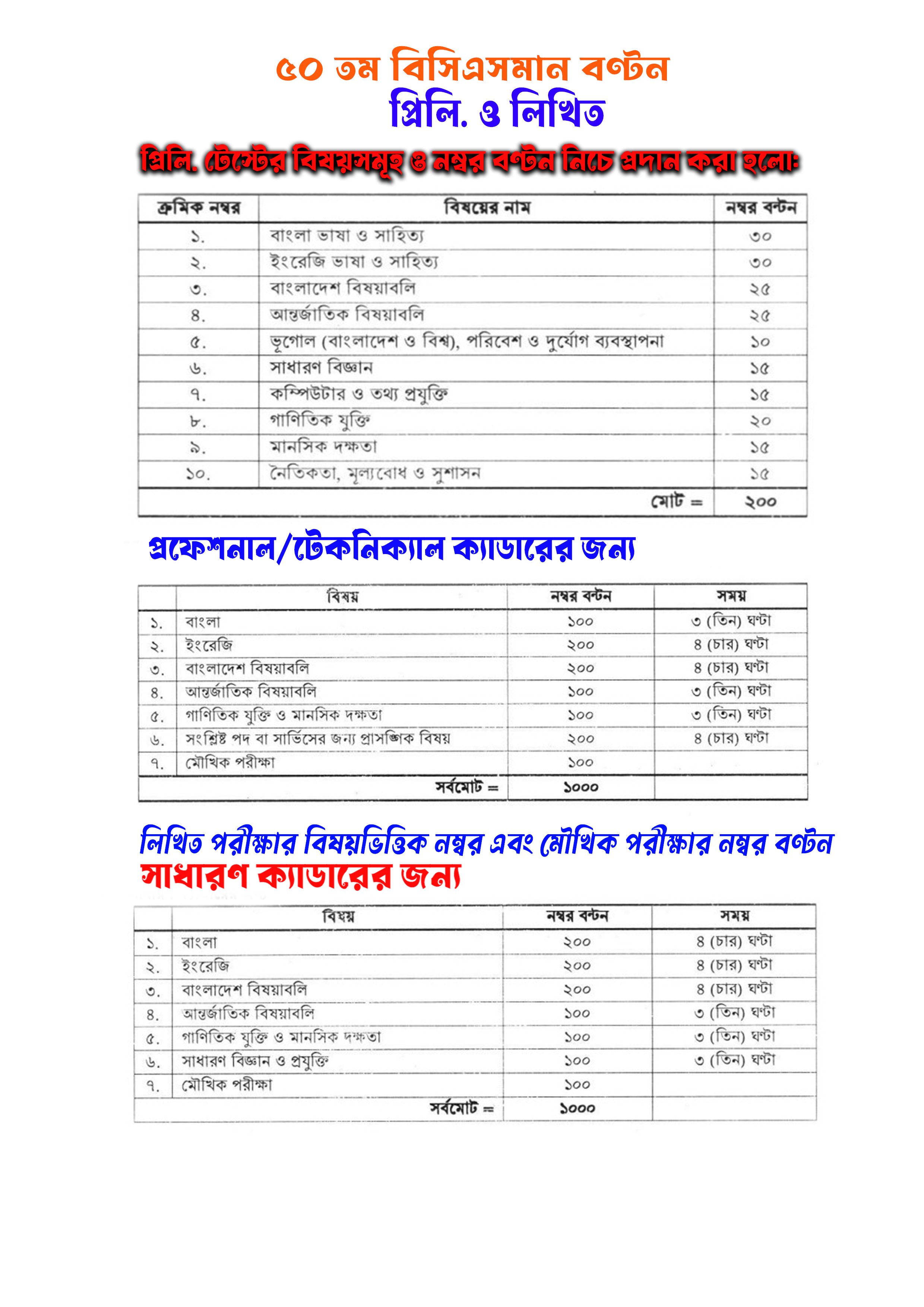 ৫০তম বিসিএস পরীক্ষার প্রিলিমিনারী ও লিখিত এর মান বণ্টন| 50th BCS Preliminary & Written Exam Marks Distribution|